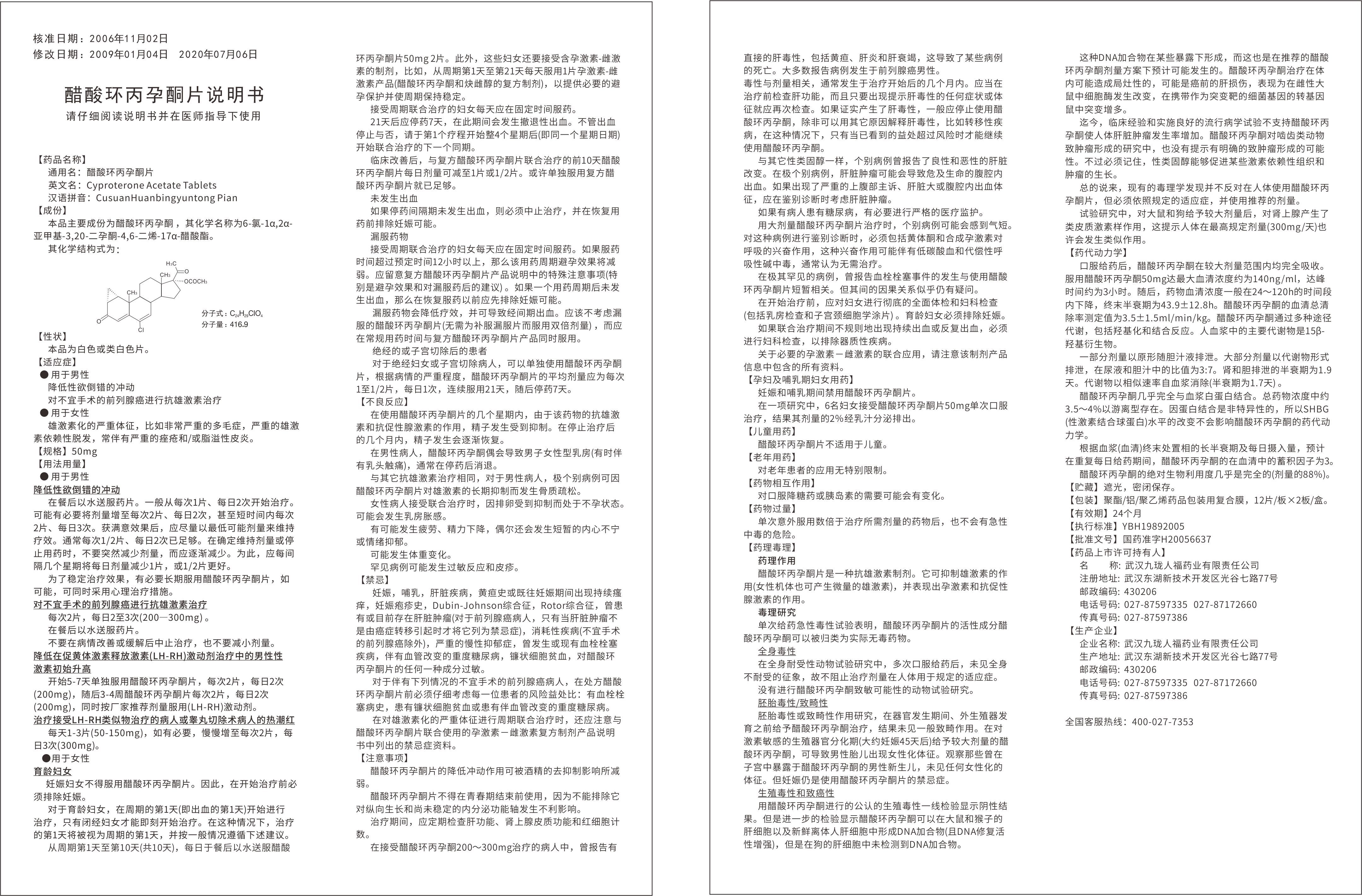 雄激素受体抑制剂,国家基本药物;用于男性的性欲倒错和前列腺癌的治疗;用于女性的痤疮、脂溢性皮炎和多毛症的治疗。