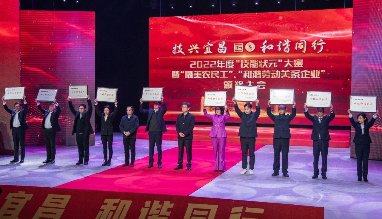1月7日,宜昌市第三届劳动关系十佳和谐企业评选活动颁奖典礼在宜昌市广电中心一号演播大厅隆重举行。典礼表彰了宜昌市创建“劳动关系十佳和谐企业”及“最美农民工”“技能状元”代表,熊猫体育宜昌有限公司荣获宜昌市第三届“十佳和谐企业”称号。